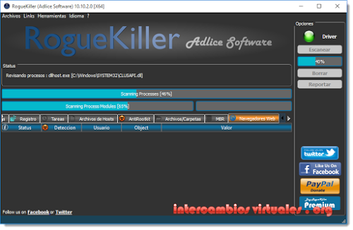 RogueKiller es un eliminador de programas falsos, sean estos antivirus engañosos u optimizadores inútiles. Es portable y compatible con todas las ediciones de Windows de 32 y 64 bits.
